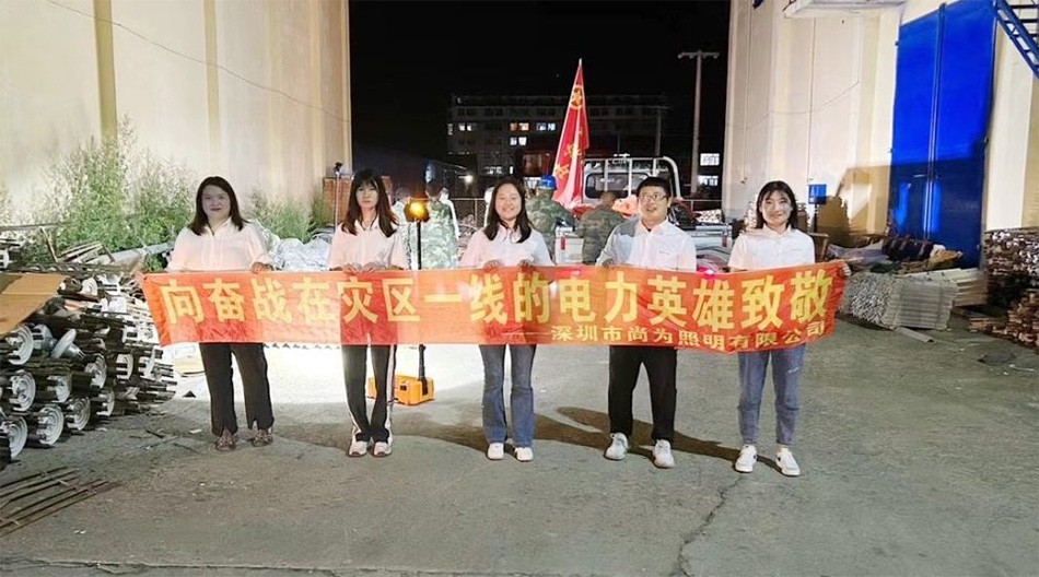 7月底開始,京津冀地區(qū)持續(xù)受到暴雨天氣侵襲,暴雨的預(yù)警和新聞一條接著一條?!捌桨泊笥谝磺小?,尚為照明河北辦事處第一時(shí)間成立9人、8車組成的應(yīng)急小組,向集團(tuán)公司反映當(dāng)?shù)匮辞椋暾?qǐng)啟動(dòng)重大突發(fā)事件應(yīng)急預(yù)案,集團(tuán)公司統(tǒng)一協(xié)調(diào)調(diào)撥大型照明燈具50套,中型照明燈具400套,單兵作戰(zhàn)頭燈800套,手電1000套,物資歷時(shí)26小時(shí)抵達(dá)河北倉(cāng)庫(kù),無(wú)償提供一線救援隊(duì)伍使用。