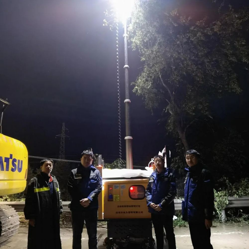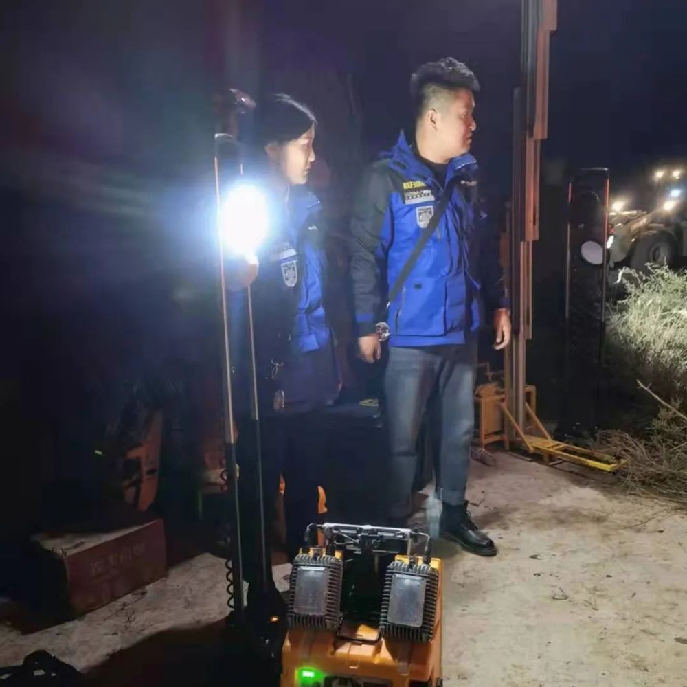白天,尚為應急救援隊兵分兩路,一隊為所有物資歸集充電,另一隊陪伴當?shù)氐念I導巡查汛情。夜晚更是我們工作的重中之重,為滿足現(xiàn)場大面積照明,我們操作無人機進行夜間照明,救援現(xiàn)場變得如同白晝。