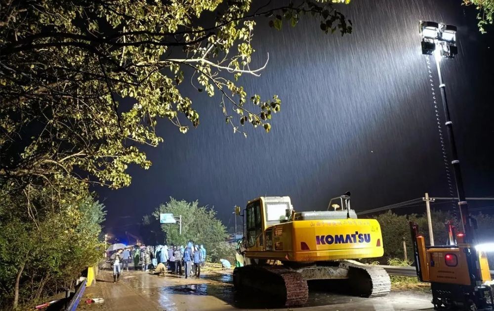 正值國慶假日期間,一路堵車下雨,尚為應急救援隊風雨無阻,終于在凌晨4點到達河津市。到達事故現(xiàn)場,沒有休息片刻,尚為應急小組立即進入戰(zhàn)斗狀態(tài),卸裝物資,調(diào)試燈具,為事故現(xiàn)場照明保障直到天明......